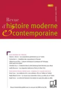 Revue d'histoire moderne et contemporaine 2002-1 No 49-1, 2002/1 - pagesPages 5 to 55Ideology, Conflicts, and Political Practices in Parisian Guilds in the 18th CenturyBy Steven L. KaplanPages 56 to 88Enlightened Reforms and Guilds: Abolition of the Arts in TuscanyBy Corine MaittePages 89 to 114Technical Cultures and Trade Practices between Lyon and the East: Inventions and Networks in the 18th CenturyBy Liliane Hilaire-PérezPages 115 to 137Industries in the City: Wallpaper Industries in the Parisian Faubourg Saint-AntoineBy Christine VelutPages 138 to 155Production or Reproduction?By Judith RainhornPages 156 to 172Medical Doctors and the Stigmatization of Onanism (Late 18th Century to Early 19th Century)By Anne CarolPages 195 to 216The Clermont Affair and the Questioning of Psychiatric Wards in 1880By Aude FauvelPages 217 to 248Reviews