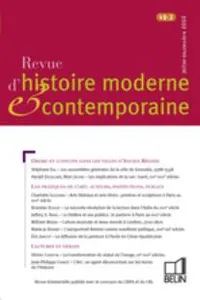 Revue d'histoire moderne et contemporaine 2002-3 No 49-3, 2002/3 - pagesPages 7 to 25Between Loyalty and Rebellion: City General Assemblies in Grenoble (1588 – 1598)By Stéphane GalPages 26 to 53Neighborhood Politics: Rights, Duties, and Conflicts in Ghent (17th–18th Centuries)By Harald Deceulaer, Marc JacobsPages 54 to 68“Liberal Arts” and “Free Arts” in Paris in the Eighteenth Century: Artists Between the Guild and the Royal AcademyBy Charlotte GuichardPages 69 to 88The Second Reading Revolution in 18th-Century ItalyBy Brendan DooleyPages 89 to 118Theater and Its Audiences: Practices and Representations of the Parterre in Paris in the 18th CenturyBy Jeffrey S. RavelPages 119 to 139The Music Culture of a Capital: The Days of the Beau Monde in London, 1700 – 1870By William WeberPages 140 to 167Female Painters at Work: Self-Portraits as Political Manifestos (18th - 19th Centuries)By Marie-Jo BonnetPages 168 to 175The Modernization of Art: Introduction of Oil Painting in Republican ChinaBy Éric JanicotPages 176 to 194Religious Symbols or Decontextualized Forms of Art: Transforming the Role of Images (15th–18th Centuries)By Olivier ChristinPages 195 to 208Arts as an Element of Anxiety in HistoryBy Jean-Philippe ChimotPages 209 to 250ReviewsBy Florence Alazard