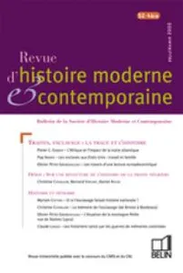 Revue d'histoire moderne et contemporaine supplément 2005-4bis Traite, esclavage : la trace et l'histoiren° 52-4bis, 2005/5 - pagesPages 5 à 17L'Afrique et l'impact de la traite atlantiquePar Pieter Cornelis EmmerPages 18 à 29Nouvelles questions autour du travail et de la famille des esclaves dans le Sud des États-UnisPar Pap N’DiayePages 30 à 45Les traites négrières, ou les limites d'une lecture européocentriquePar Olivier GrenouilleauPages 46 à 58Sur une relecture de l'histoire de la traite négrière : débatPages 59 à 63Et si l'esclavage colonial faisait histoire nationale ?Par Myriam CottiasPages 64 à 81L'émergence récente de la mémoire de l'esclavage dans l'espace public : enjeux et significationsPar Christine ChivallonPages 82 à 981902 : l'éruption de la montagne Pelée, vue de NantesPar Olivier GrenouilleauPages 99 à 109Les historiens saisis par les guerres de mémoires colonialesPar Claude LiauzuPages 110 à 110David Turley, Slavery, Oxford, Blackwell Publishers, 2000, 174 p.Par Olivier GrenouilleauPages 112 à 112Olivier Pétré-Grenouilleau, L'argent de la traite. Milieu négrier, capitalisme et développement : un modèle, Paris, Aubier, 1996, 423 p., 21, 34€Par Guillaume DaudinPages 114 à 114Érick Noël, Les Beauharnais. Une fortune antillaise, 1756-1796, Genève, Droz, 2003, 404 p., 17 planchesPar Olivier GrenouilleauPages 115 à 115Yves Bénot, Marcel Dorigny ( Éd.), Rétablissement de l'esclavage dans les colonies françaises, 1802. Ruptures et continuités de la politique coloniale française (1800-1830). Aux origines d'HaïtiPar Olivier GrenouilleauPages 117 à 120Marc Ferro (Éd.), Le livre noir du colonialisme. XVIe - XXIe siècle : de l'extermination à la repentance, Paris, Robert Laffont, 2003, 843 p., 29€Par Hélène Blais